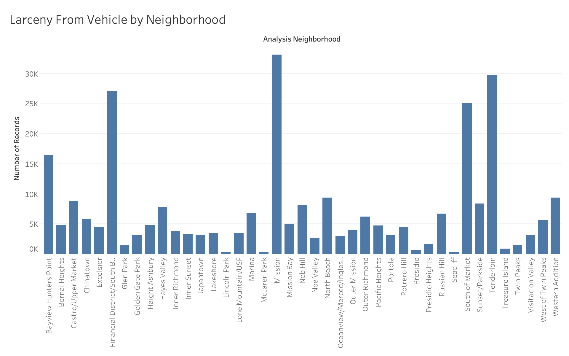 Using this prototype, I can say that the most dangerous part of San Francisco to park your car is in the northeastern part of the city. This is because